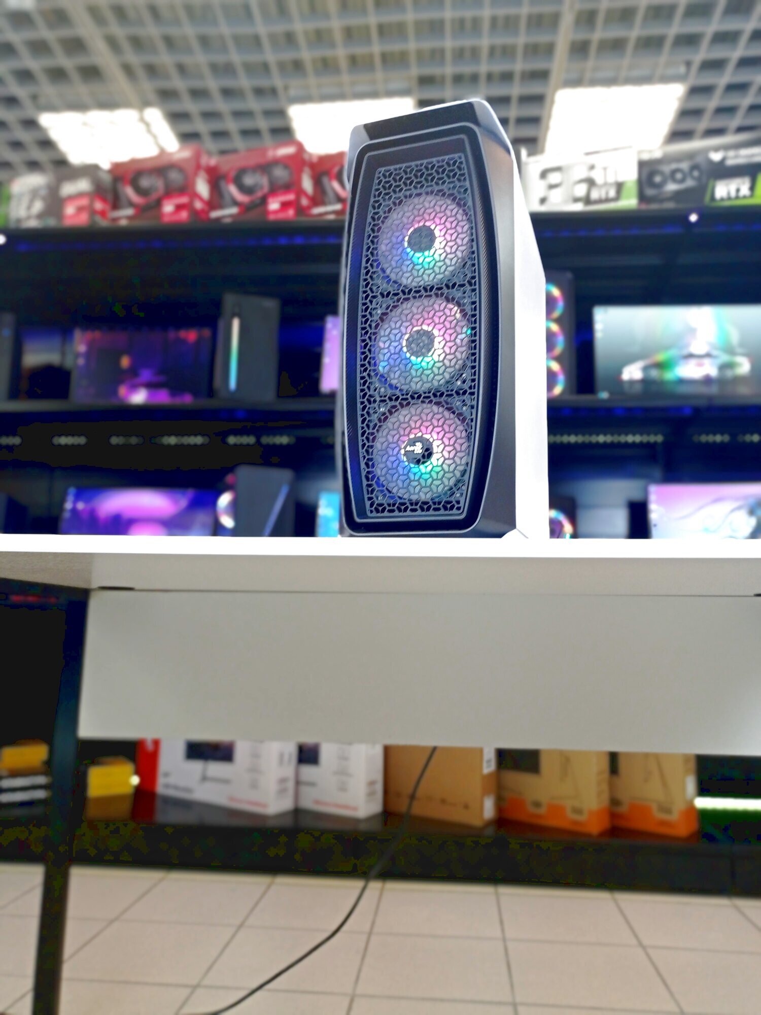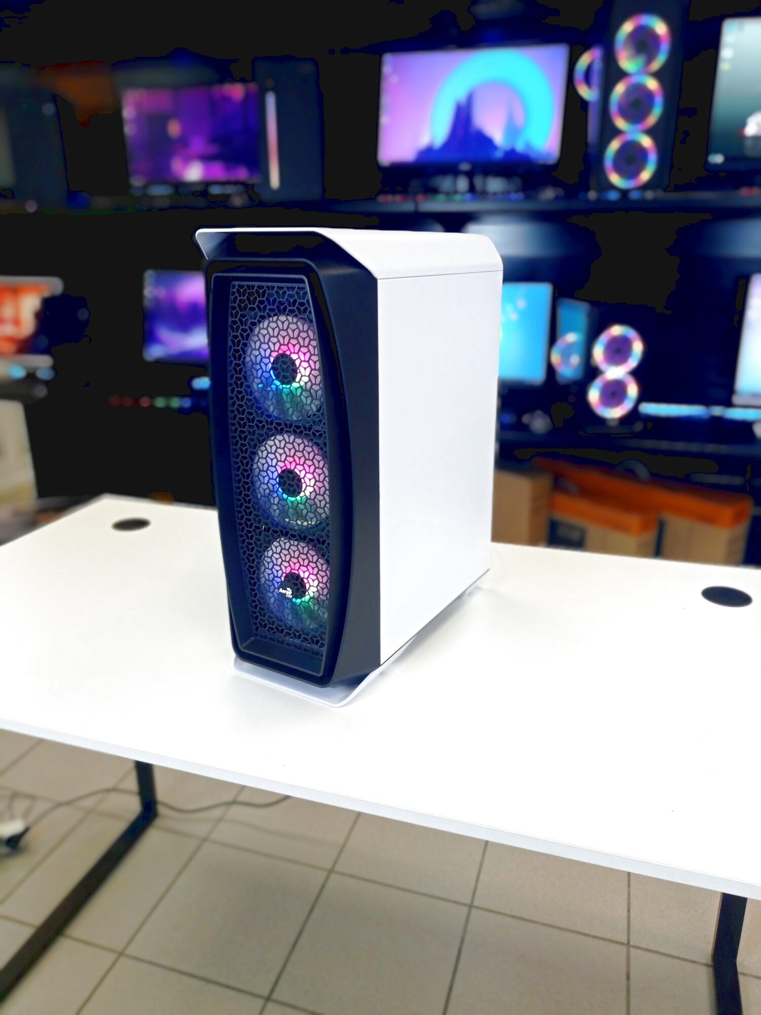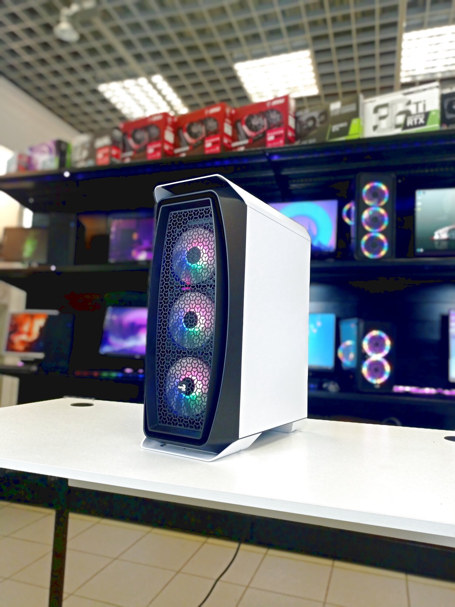 Компьютер имеет стильный черный корпус Midi-Tower от AeroCool Aero One Frost, который обеспечивает хорошую вентиляцию и удобство обслуживания. Блок питания на 500 Вт гарантирует стабильную работу всех компонентов.