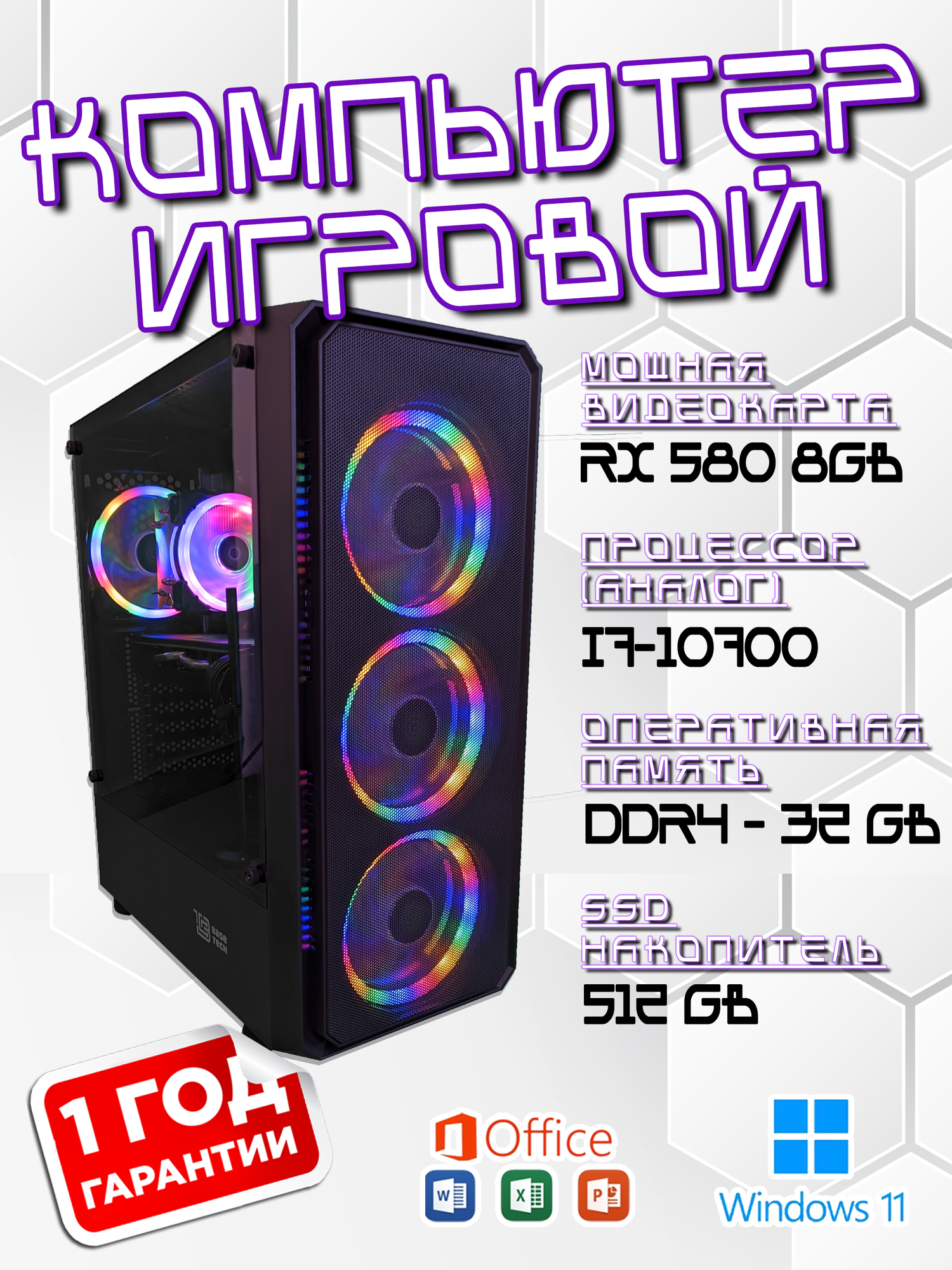 Графическая карта: AMD Radeon RX 580 (8 ГБ) — позволяет наслаждаться графикой высокого разрешения и играть в современные игры на высоких настройках.