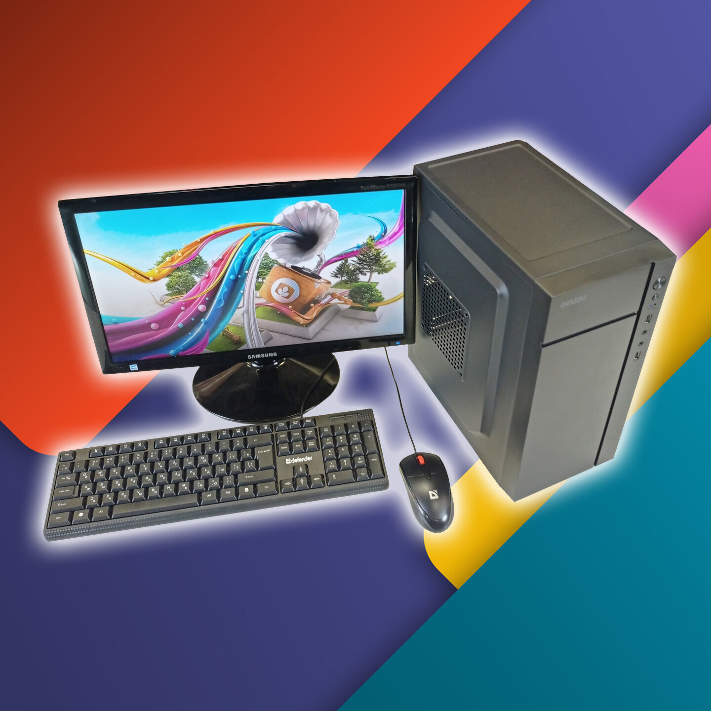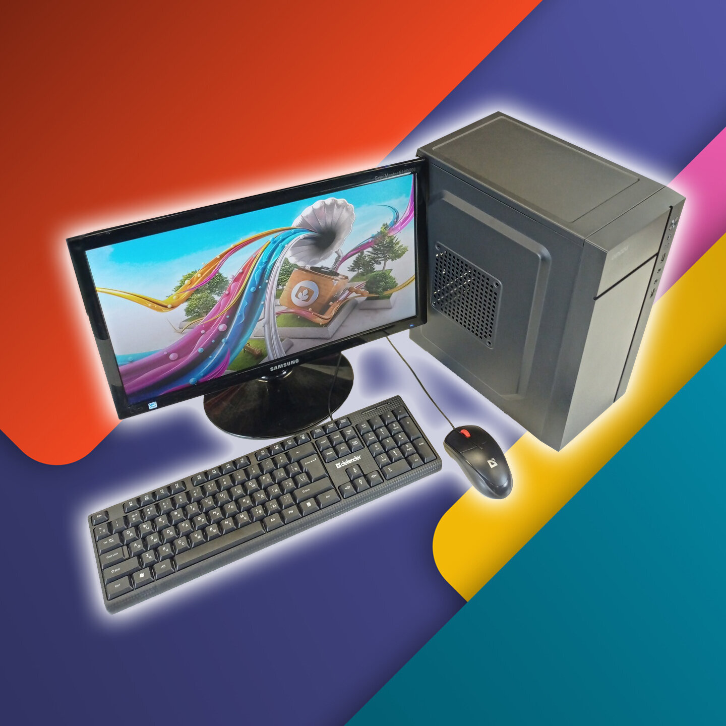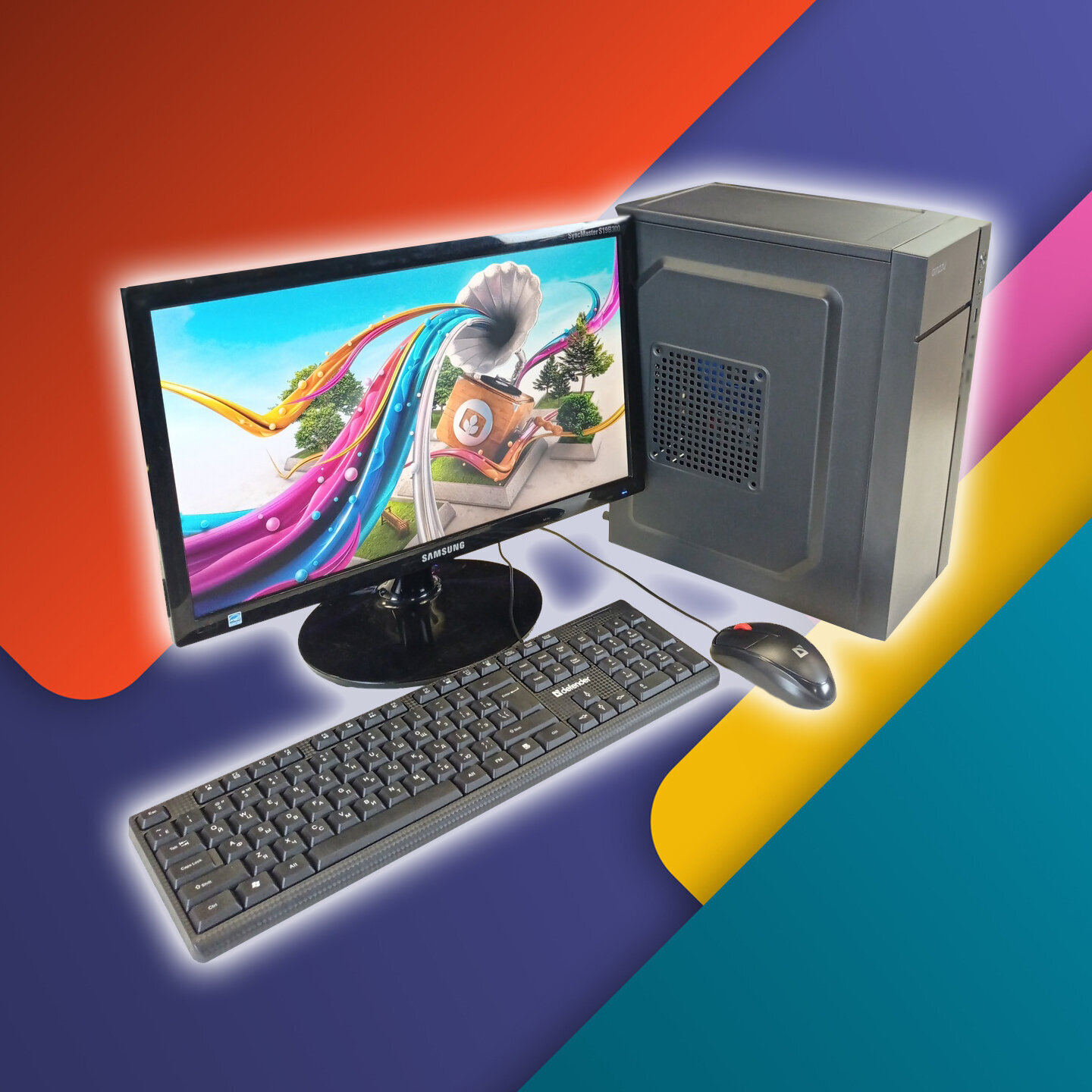 Компьютер имеет стильный черный корпус типа Mini-Tower, который легко впишется в любой интерьер. Монитор с диагональю 19 дюймов и разрешением 1360x768 пикселей обеспечивает четкое и яркое изображение.